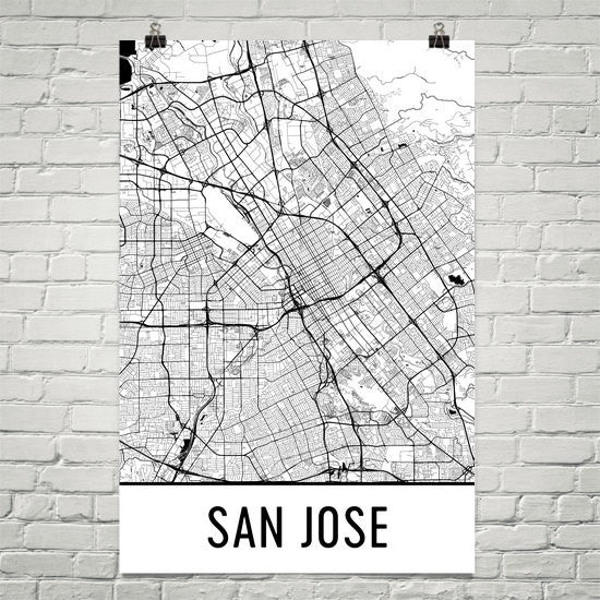 San Jose CA Street Map Poster Wall Print by Modern Map Art