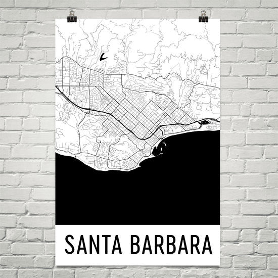 Santa Barbara CA Street Map Poster Wall Print by Modern Map Art